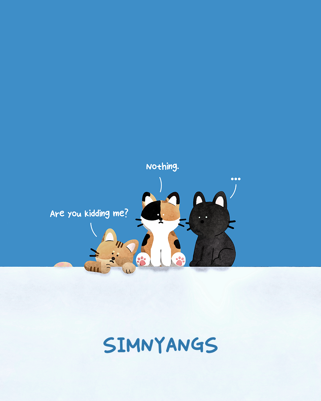 세상은 빠르게 변화하고, 사람들은 쉴 새 없이 바쁘게 살아갑니다. 정신없이 흘러가는 하루 속에서 우리는 때때로 숨 돌릴 공간이 필요하죠. '심냥즈'는 그런 틈을 마련해 주기 위해 탄생했습니다. 바쁜 현대인의 삶과는 정반대인, 느긋하고 한가로운 고양이들의 일상을 바라보며 작은 위로와 따뜻함을 느낄 수 있도록, 작가는 ‘심냥즈’의 세계를 한 컷 한 컷 그림으로 담아냅니다.