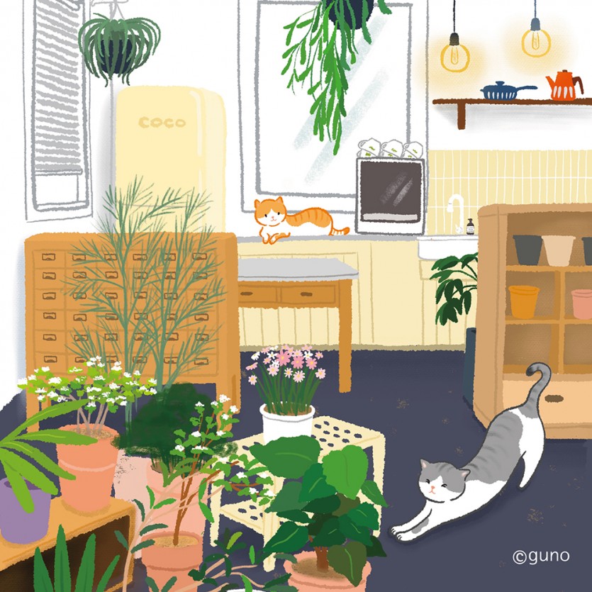 [식물집 필녹], 2021, 초록 초록한 화초들이 반겨주는 공간에 함께 어울리는 고양이들