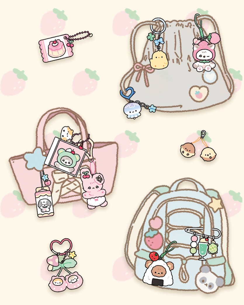 최근 유행하는 가방과 가방에 가득 달린 키링에서 영감을 받아 제작했습니다. 작고 귀여운 키링 컨셉입니다.