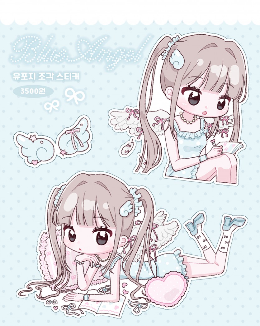 사랑스러운 소녀들의 일상과 수호천사 판다들의 스티커를 그립니다