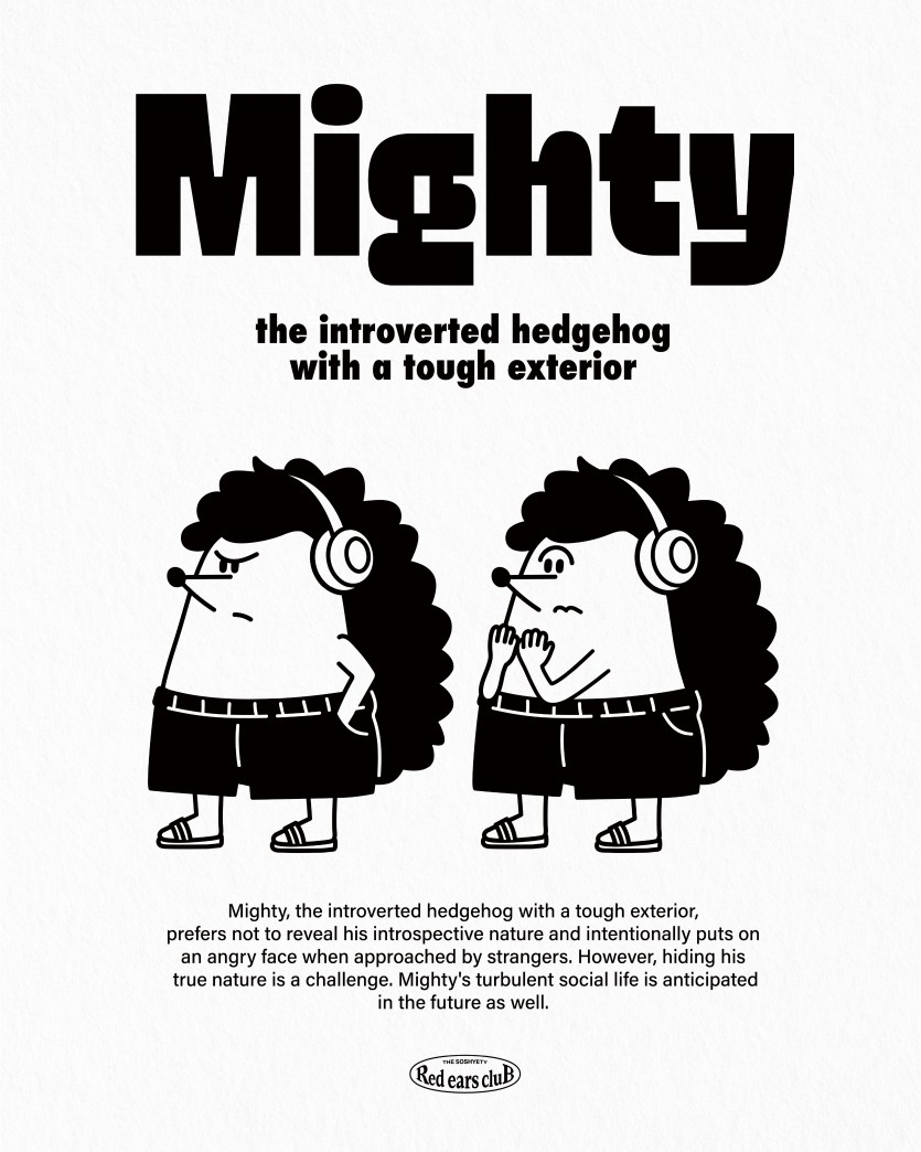 귀가 자주 빨개지는 특성을 가진 내향인들의 모습을 캐릭터로 디자인하고 공감할만한 메시지와 함께 아트워크를 만듭니다.