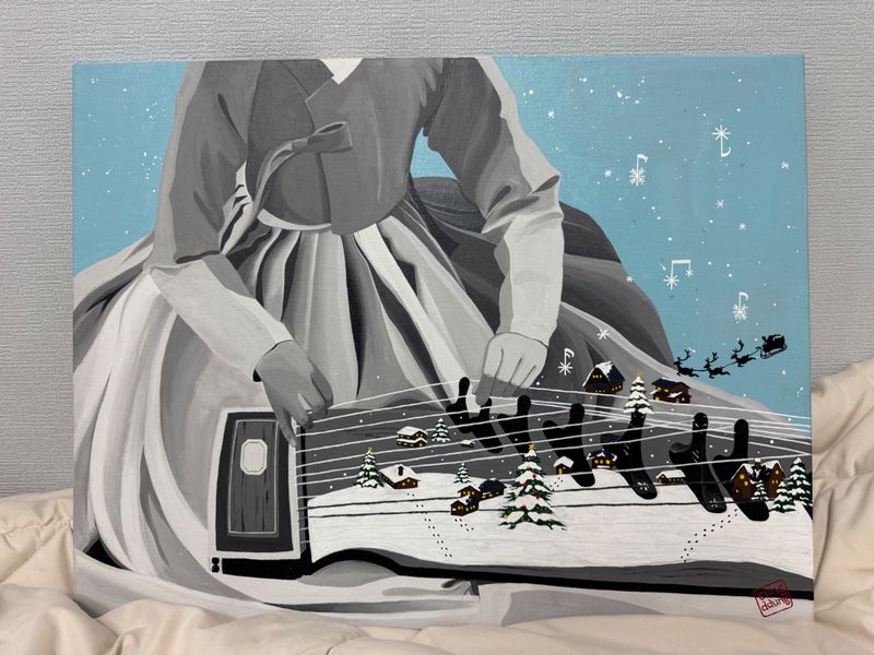 캐럴은 우리의 전통 악기를 가지고 연주하는 음악의 소리를 이미지로 표현했습니다.