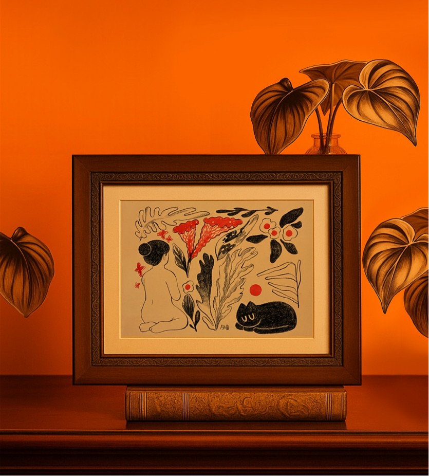 검은 식물과 작은 동물들이 머무는 정원은, 삶의 쉼표이자 내면을 들여다보는 곳이다. 일러스트를 통해 지친 현대인들에게 쉼을 전달하고 자신을 찾아가는 방향성을 제시하고 가벼운 위로를 전한다