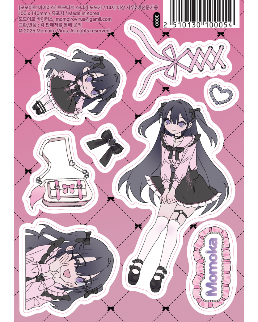 상처와 고독 속에서도 사랑을 꿈꾸는 지뢰계 소녀 '모모카'와 세상과 단절된 히키코모리 전파계 소녀 '이로하'. 두 소녀는 서로의 불완전함을 통해 결핍을 채우고, 세상과 다시 연결되는 작은 이야기에서 시작된 브랜드, 모모이로 바이러스입니다.