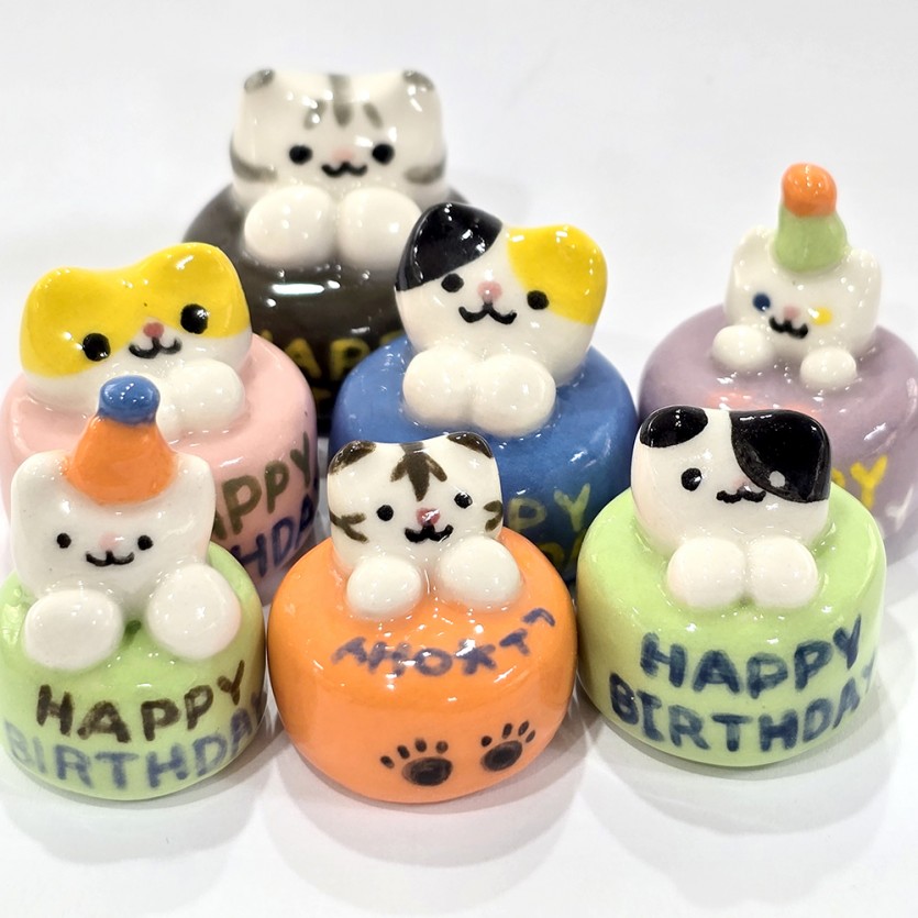 고양이가 올라간 케이크/파이나 독특하게 생긴 고양이 오브제를 만듭니다.