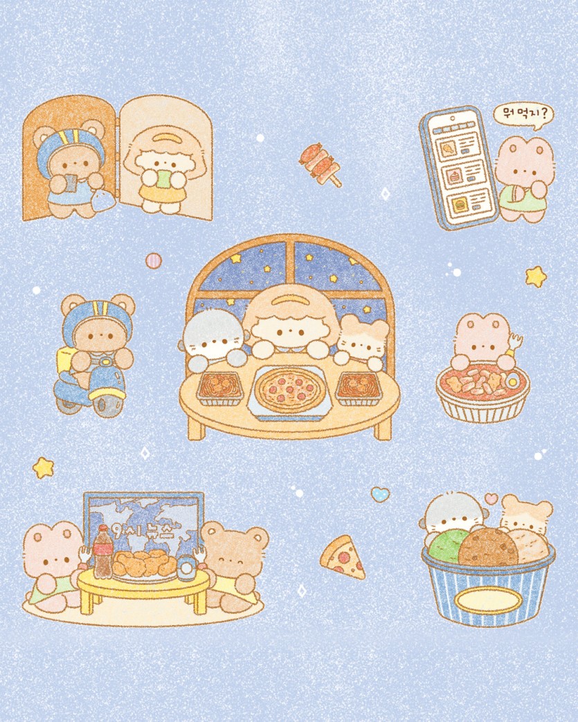 포슬한 색연필 질감으로 귀여운 일상을 그립니다.