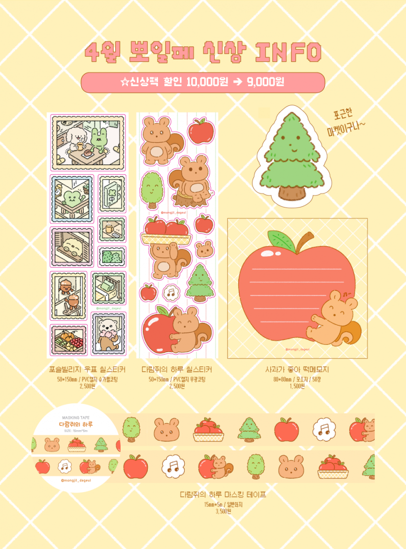 안녕하세요! 몽질다글입니다 : ) 제 이름은 '몽질이'와 '다글다글하다'의 순우리말이 섞인 합성이인데요! '몽질이'는 모두라는 뜻이며, '다글다글하다'는 작은 것이 모여 있다는 뜻입니다. 모든 작은 것들이 모여있는 아지트가 되길 바라는 마음으로 이름 지었어요. 작고 소중한 일상 속에서 행복 찾기, 무채색의 날에 한 방울의 물감이 되길! 이 마음을 가지고 문구를 제작하고 일러스트를 그리고 있습니다.