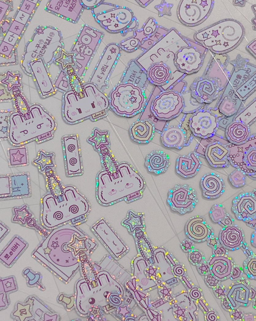 반짝반짝 별빛처럼 반짝이는 홀로그램스티커로 다꾸부터 폰꾸,폴꾸 다양하게 활용하기 좋아요 일상에 반짝반짝 눈부신 귀여움으로 특별함을 더해보세요