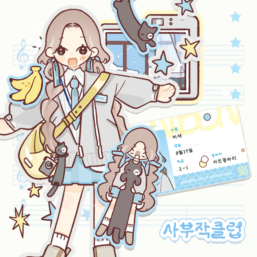 소녀들이 세상을 구한다! 사부작클럽은 ‘작고 소소하지만 확실한 감정들’을 포착하는 브랜드입니다. 그 시절 우리가 사랑했던 감성을 담아, 사랑스럽고 귀여운 소녀들의 일상을 그려나가고 있어요. 작은 설렘, 조용한 기쁨, 따뜻한 눈빛 같은 감정들을 전하고 싶습니다. 그림을 통해 여러분도 풋풋하고 따뜻한 감성을 함께 느껴보세요.