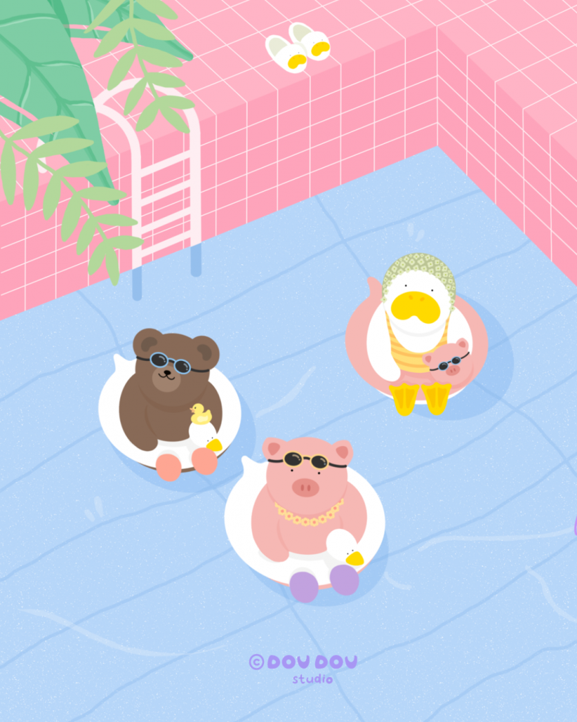 안녕하세요. 도우도우 스튜디오라는 브랜드는 오리,곰,돼지 세마리의 캐릭터로 다양한 그림을 그려내고 굿즈들을 제작하도 있어요. 파스텔 톤의 잔잔함 색감과 귀여운 요소들을 더해서 사람들이 저의 그림을보고 미소를 짓게하는게 저의 목표에요. 요즘같이 살기 어려운 세상에 조금이라고 행복을 드리고 싶은게 저의 브랜드 모토입니다. 저의 전공은 원래 일러스트쪽을 아니지만 캐릭터쪽 일러스트를 접하면서 이 매력에 푹 빠져서 다양한 굿즈들도 많이 제작하고 있어요.