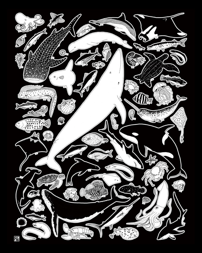 흑백의 세상에서 파도와 고래, 우주와 우주인, 그리고 나름 귀여운 것들을 그리는 일러스트레이터 휴더휴먼입니다. 주로 펜과 잉크로 종이에 작업하지만 아날로그 방식이면 뭐든 시도하는 편입니다.