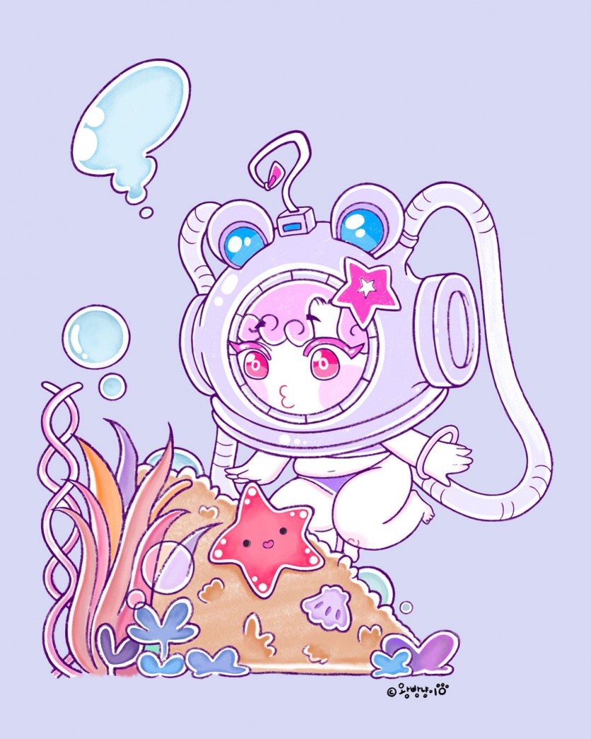 wabg_bbang_1 : 앞으로 연재할 소녀 시리즈 중 '심해소녀'입니다. 계절에 따라 일상에 판타지 요소를 한 스푼 넣어 제품을 제작할 예정입니다.