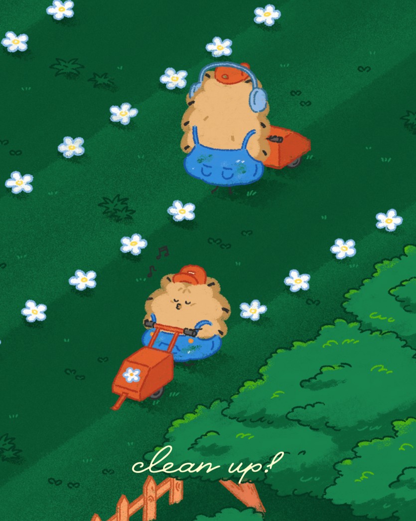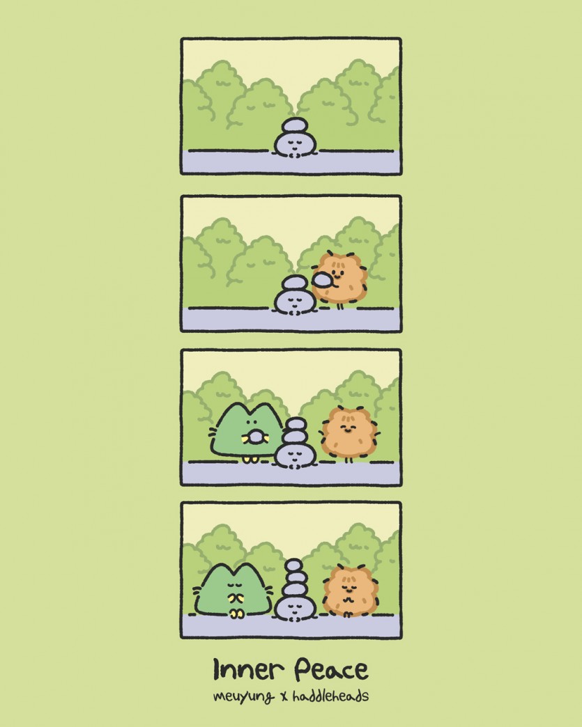 해들해즈 & 므융의 콜라보. 낮에는 식물 친구들과 즐겁게 놀고 밤에는 토분에서 잠을 자는 고사리 해들해즈를 그리는 식물 수집가 안테일과 산이 되고 싶은 고양이 산고냥과 다섯 마리 고양이 오냥이를 그리고 있는 귀여움 수집가 므융입니다.