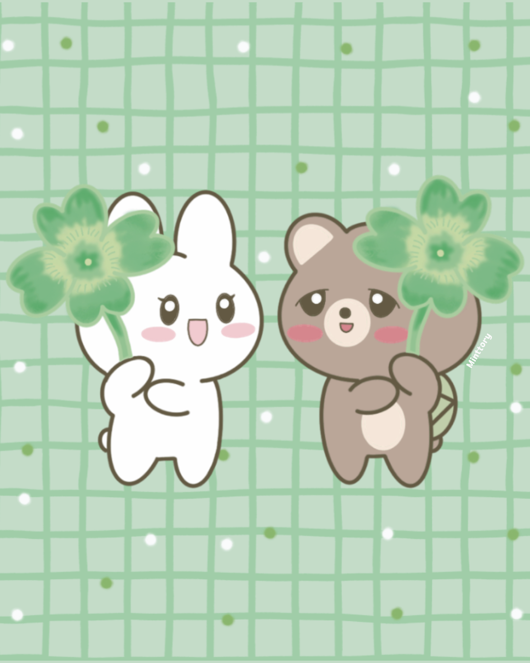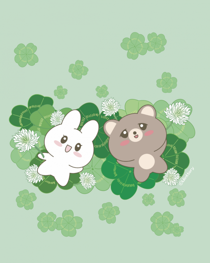 1. 행운을 나누어 주고 싶은 샤토와 거고미가 클로버에 누워있어요. 이 그림을 보고 행운과 행복이 가득하기를 빌어요.