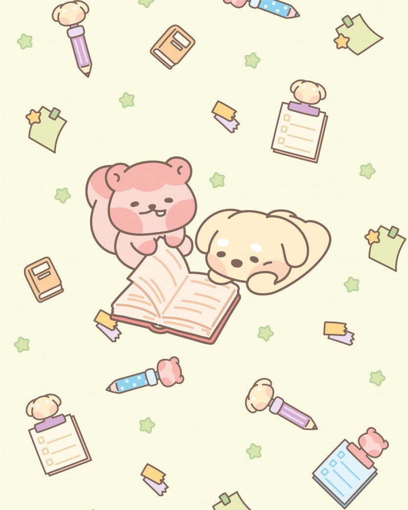 1번째 이미지는 물렁이 감지와 또리가 책을 읽는 장면으로 단단이가 되기 위한 방법이 책에 나와있다는 소문을 듣고 책을 찾아 보고 있는 이야기를 담고 있습니다.