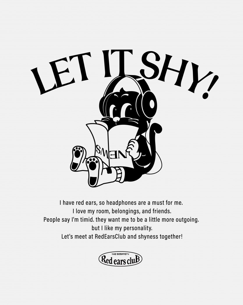 귀가 자주 빨개지는 특성을 가진 내향인들의 모습을 캐릭터로 디자인하고 공감할만한 메시지와 함께 아트워크를 만듭니다.