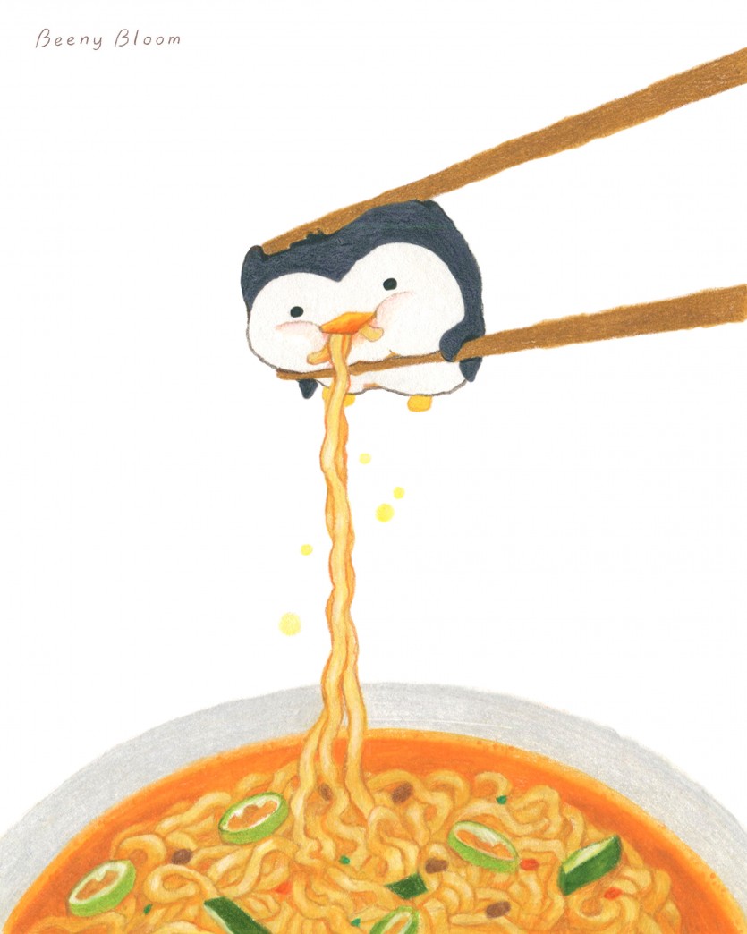 음식 사이 낑겨있는 귀여운 펭귄의 모습을 담았습니다!