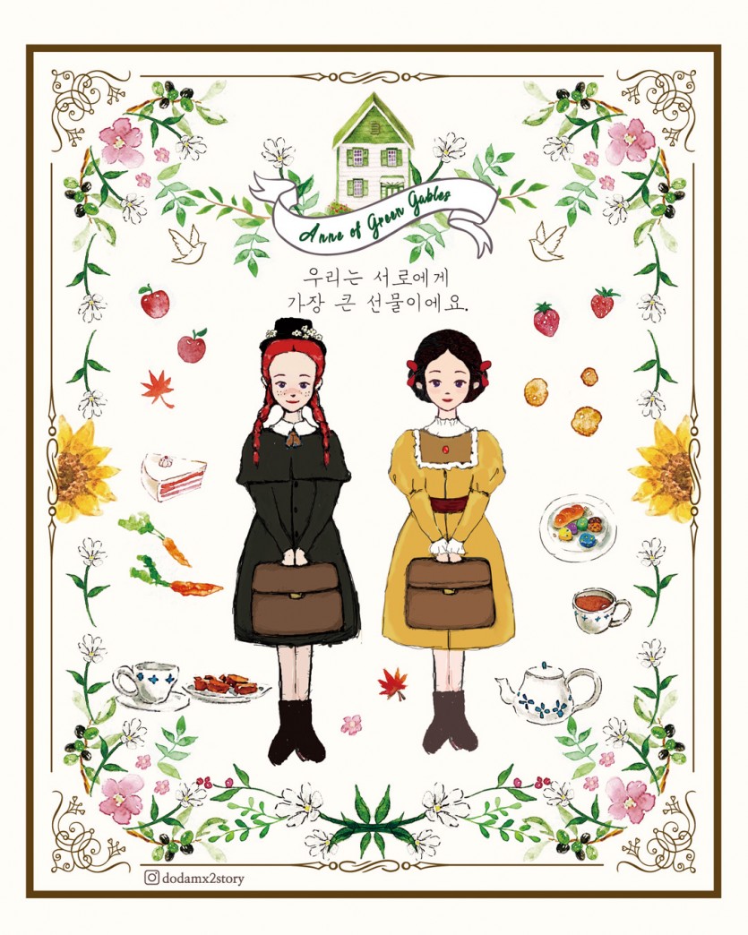 저는 빨간머리 앤, 일월오봉도, 교룡기 등 한국적 이미지와 감성적인 캐릭터를 주제로 일러스트를 제작하고, 이를 활용한 유리컵, 자석, 키링 등 다양한 소품을 선보입니다.