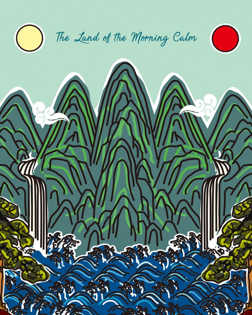 실제 일월오봉도를 바탕으로 재해석하여 그린 작품으로, 한국적 상징과 현대적 감각을 더해 독창적인 일러스트로 탄생했습니다.