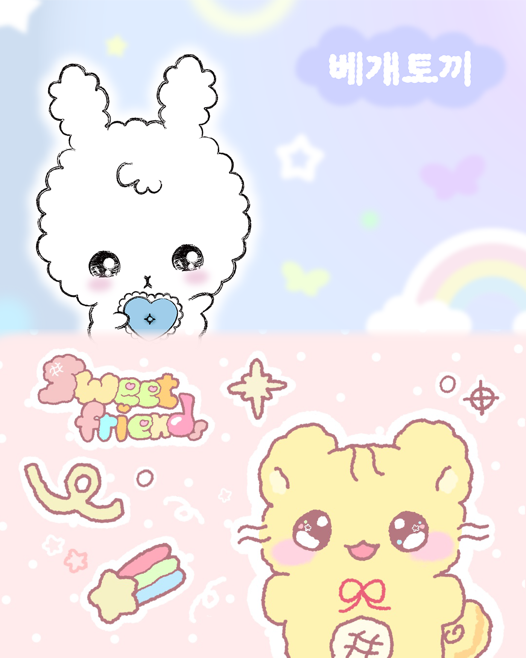 베개토끼 : 베개토끼는 사람들의 꿈이 베개 속 솜에 스며들어 태어난 솜뭉치 토끼 캐릭터입니다. 꿈여행을 떠나는 베개토끼들의 이야기를 통해 일상에 힐링과 감성을 더하며, 다양한 굿즈와 콘텐츠를 제작합니다. 또한, 수익의 일부를 유기 토끼 보호소에 기부하여 캐릭터의 힘으로 사회에 선한 영향력을 전하는 ESG 캐릭터 브랜드입니다. / 스윗프렌즈 : 아기자기한 동물 캐릭터를 그리는 작가 <은진>입니다. <스윗프렌즈>라는 브랜드명으로 활동하고 있습니다. 각각 달콤한 디저트로 이루어진 동물 캐릭터들에게 생명을 불어넣어 귀여운 컨셉의 문구를 제작합니다! 앞으로 다양한 주제로 스티커, 키링, 메모지 등을 선보일 예정입니다.
