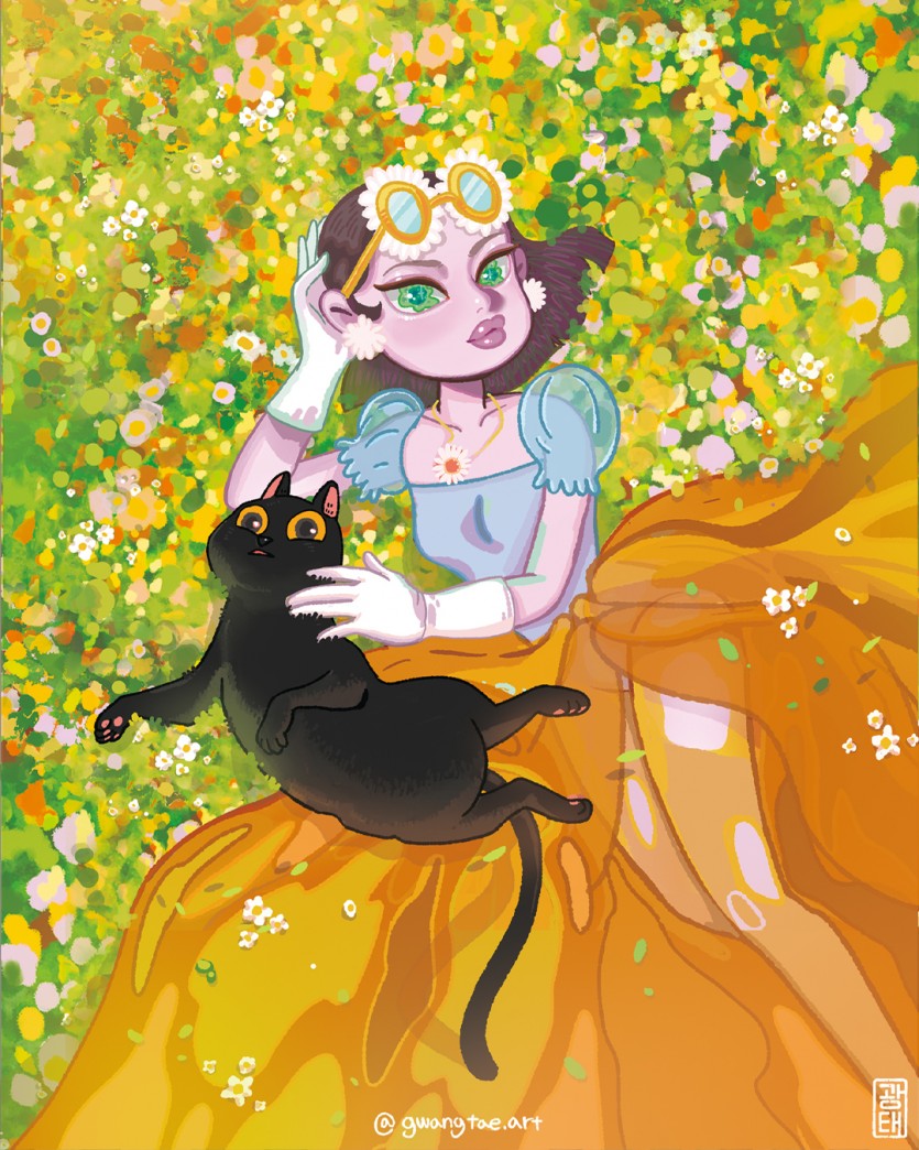 공주는 살짝 웃으며 그 옆에 누웠다.
