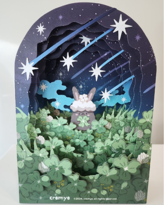 행운이 가득 담긴 토끼풀 꽃에서 태어난 크로묘입니다.