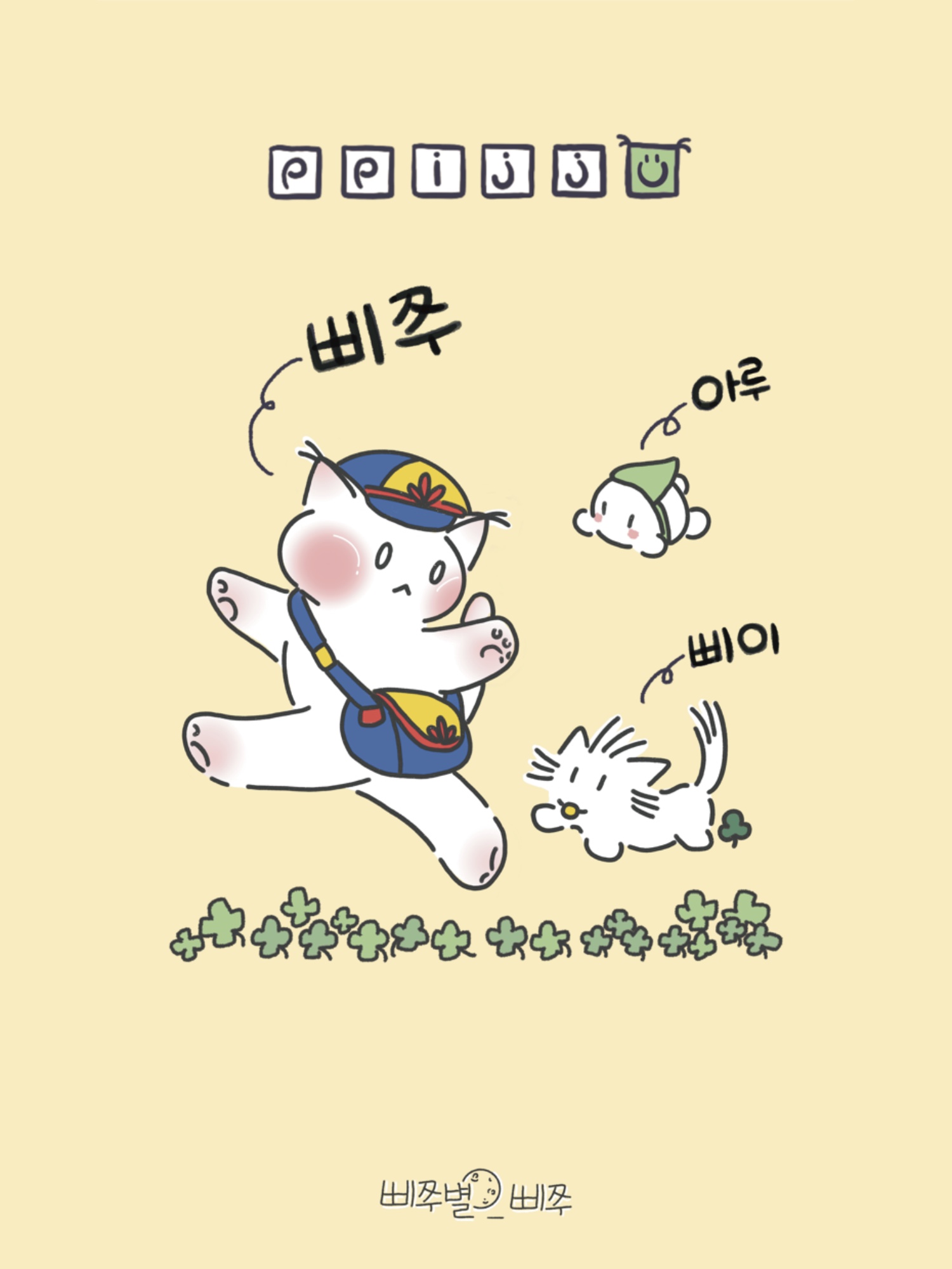 삐쭈별에 사는 삐쭈, 아기고양이 삐이, 요정 아루와 친구들의 정감있는 이야기의 순간을 그려냅니다.