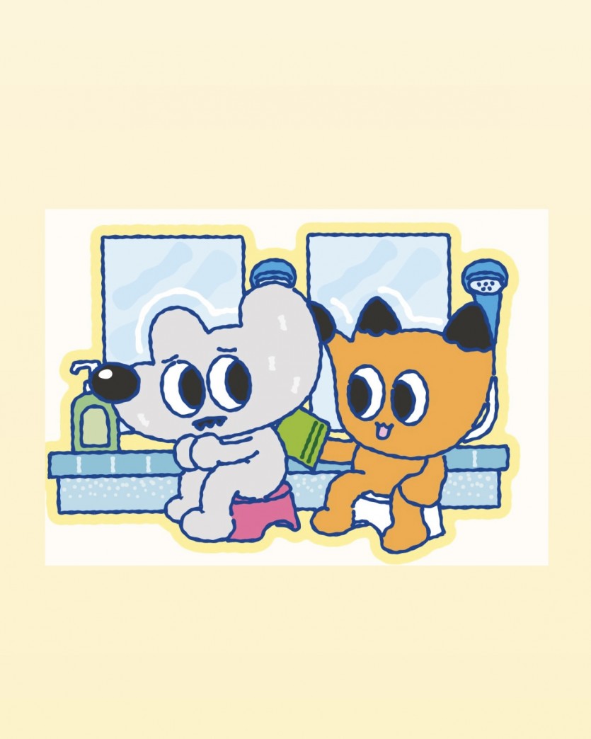 이번에 소개하는 ‘클린팩 시리즈’는 “다 때가 있다”는 문장을 테마로 한 목욕탕 씬 스티커입니다. 단순한 청결을 넘어, 몸과 마음을 정리하고 회복하는 시간을 울피와 볼피의 귀엽고 유쾌한 일상 속에 담았습니다.