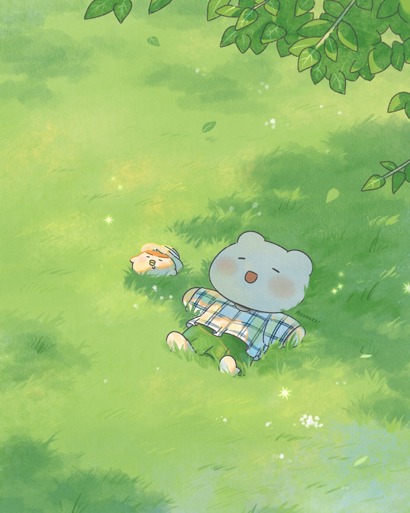 아콘찌즈의 포근한 일상을 그리는 캐릭터 일러스트레이터입니다. 다람쥐가 되고싶은 아콘찌, 활발한 고양이 찌즈, 게으른 강아지 스모어피, 푹신한 곳을 좋아하는 참새 참참이. 아콘찌즈의 평범한 일상을 따뜻한 색감으로 표현합니다.