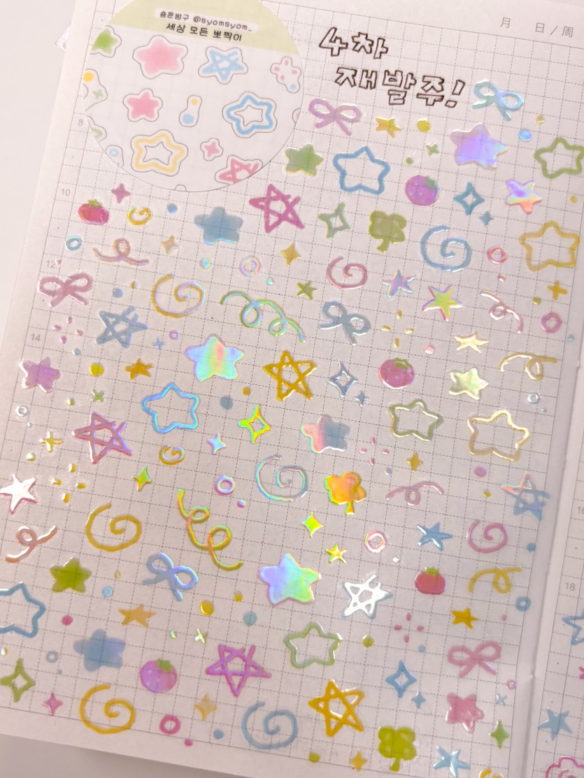 반짝반짝한 키스컷 테이프들과 아기자기 스티커들입니다.