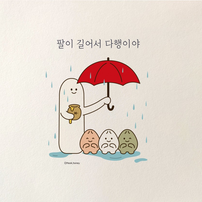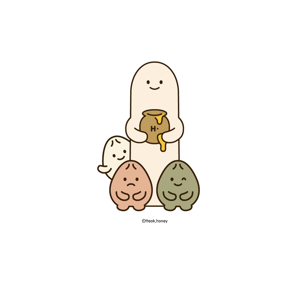떡하니는 발이 없는 길쭉한 가래떡 형태로 늘 꿀단지를 들고 다니는 포근한 친구이며,