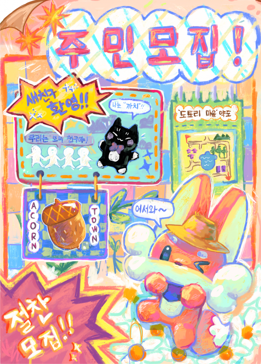 자연물과 추상적인 패턴을 사용하여 여우씨의 동화같은 그림을 그리는 소요작가와 게임 속 세상에서 튀어나온 캐릭터들로 현실과 게임속 세상을 키치한 매력으로 풀어나가는 담비작가입니다. 두가지 스타일을 함께 선보임으로서 한 부스에서 다양한 스타일을 즐기실수있으십니다.