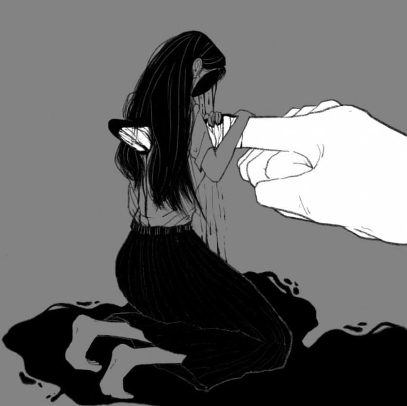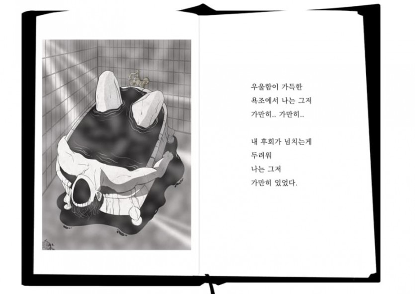 슬픔과 우울함은 검게 물들어 채울 수 없어 검게 흘러내린다.