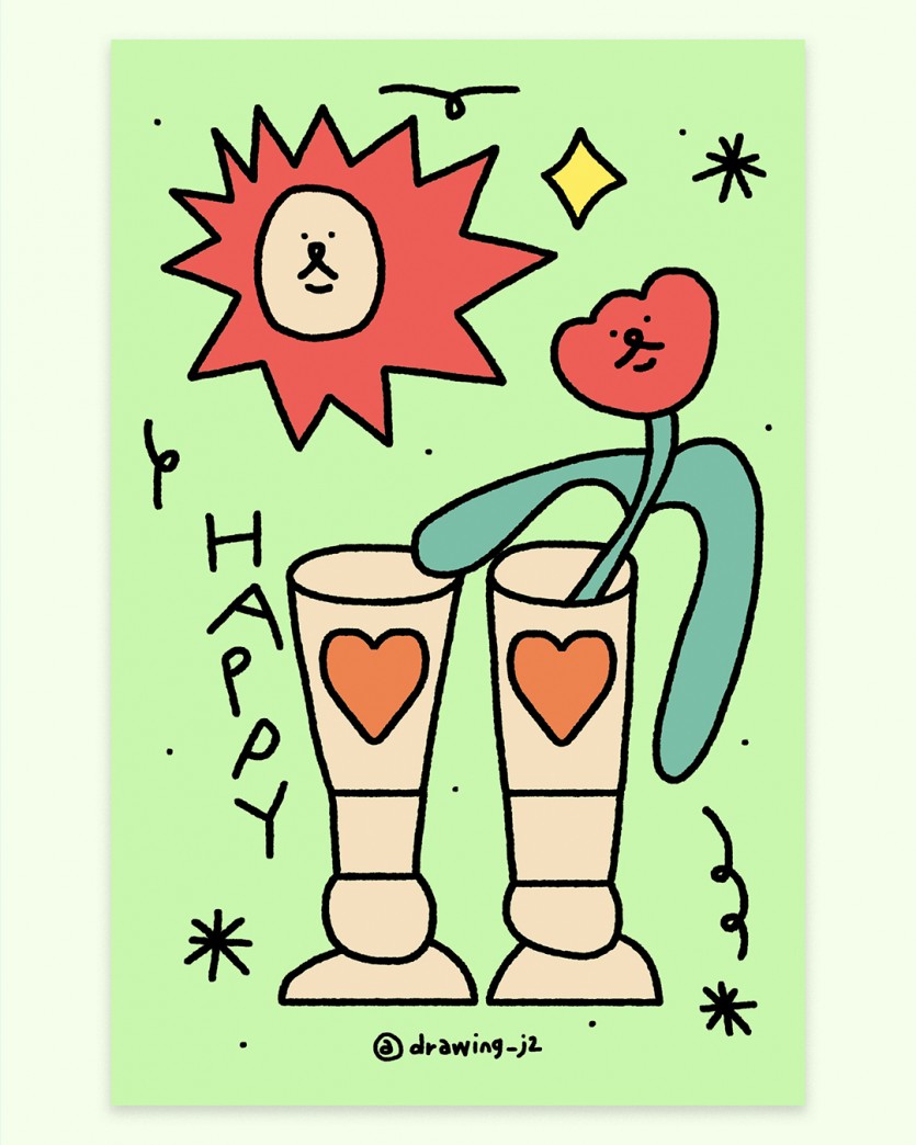 스티커, 일러스트, 굿즈 등 단순하면서도 직관적인 색감과 형태감으로 그림 속 이야기들을 만들어 갑니다.