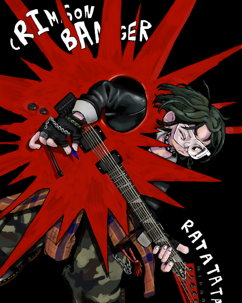 crimson banger: (A3) 폭발하는 기타 소리를 시각적으로 표현한 작품.