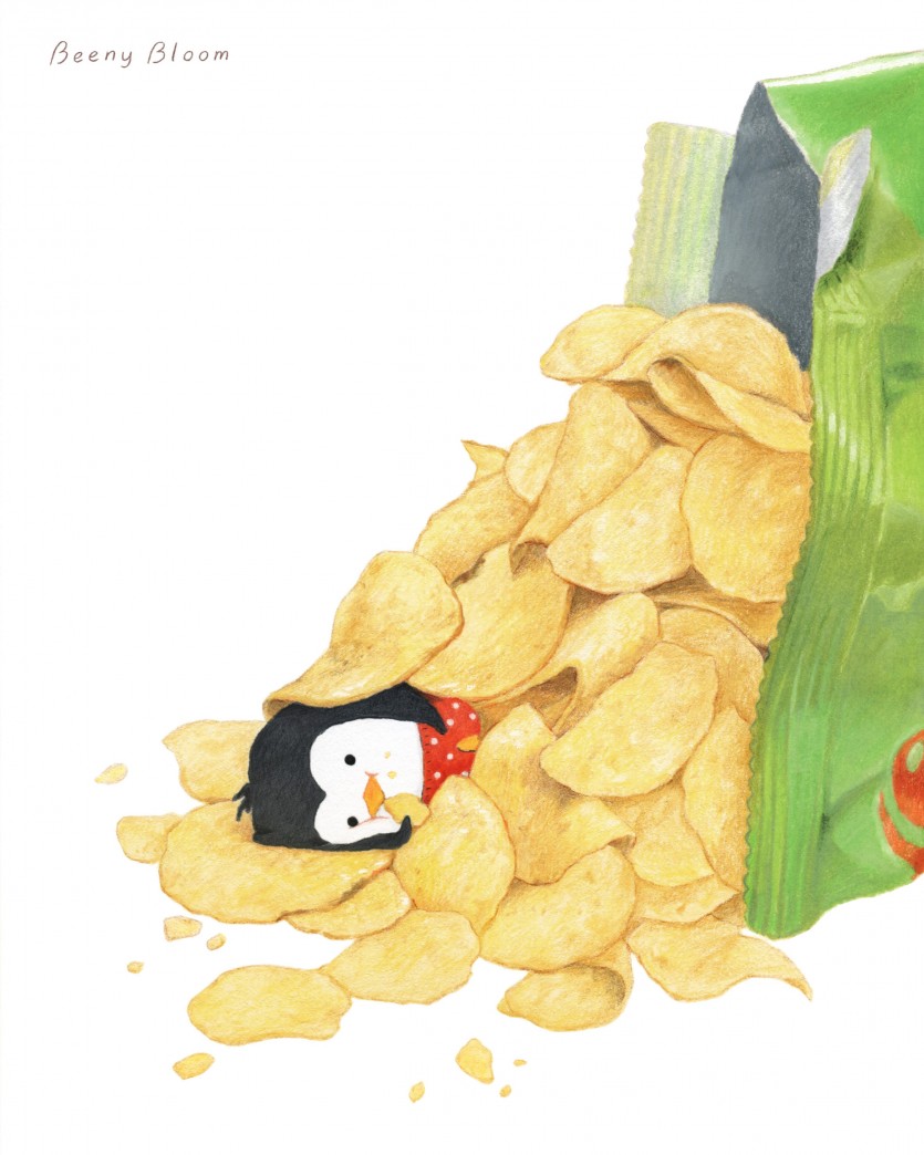 음식 사이 낑겨있는 귀여운 펭귄의 모습을 담았습니다!