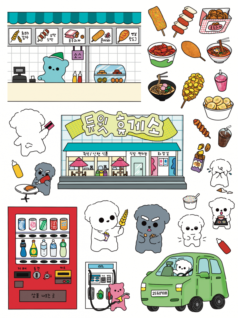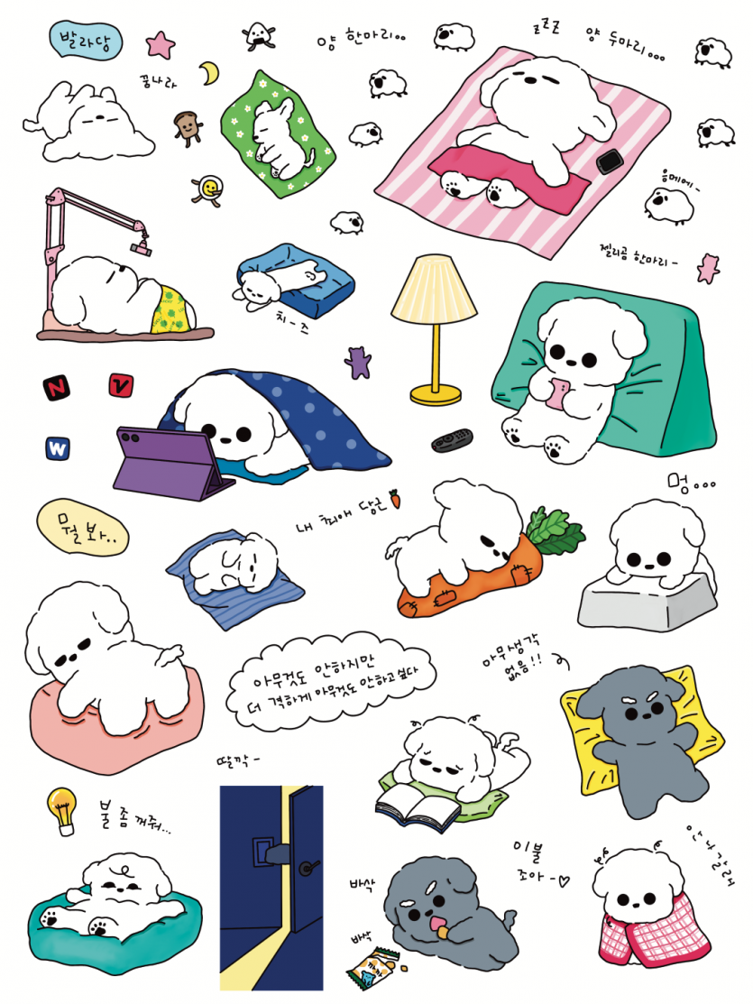 안녕하세요 듀윗드로우 입니다. 귀여운 강아지 캐릭터 뽀놀놀의 일상모습을 심플하면서도 재치있게 그려내고, 사람들의 일상적인 모습들을 심플하지만 디테일하게 공감할 수 있도록 뽀놀놀 캐릭터로 표현하고있습니다. 뽀놀놀 캐릭터와는 다른느낌으로 포근하고 감성적인 곰돌이들을 그립니다.