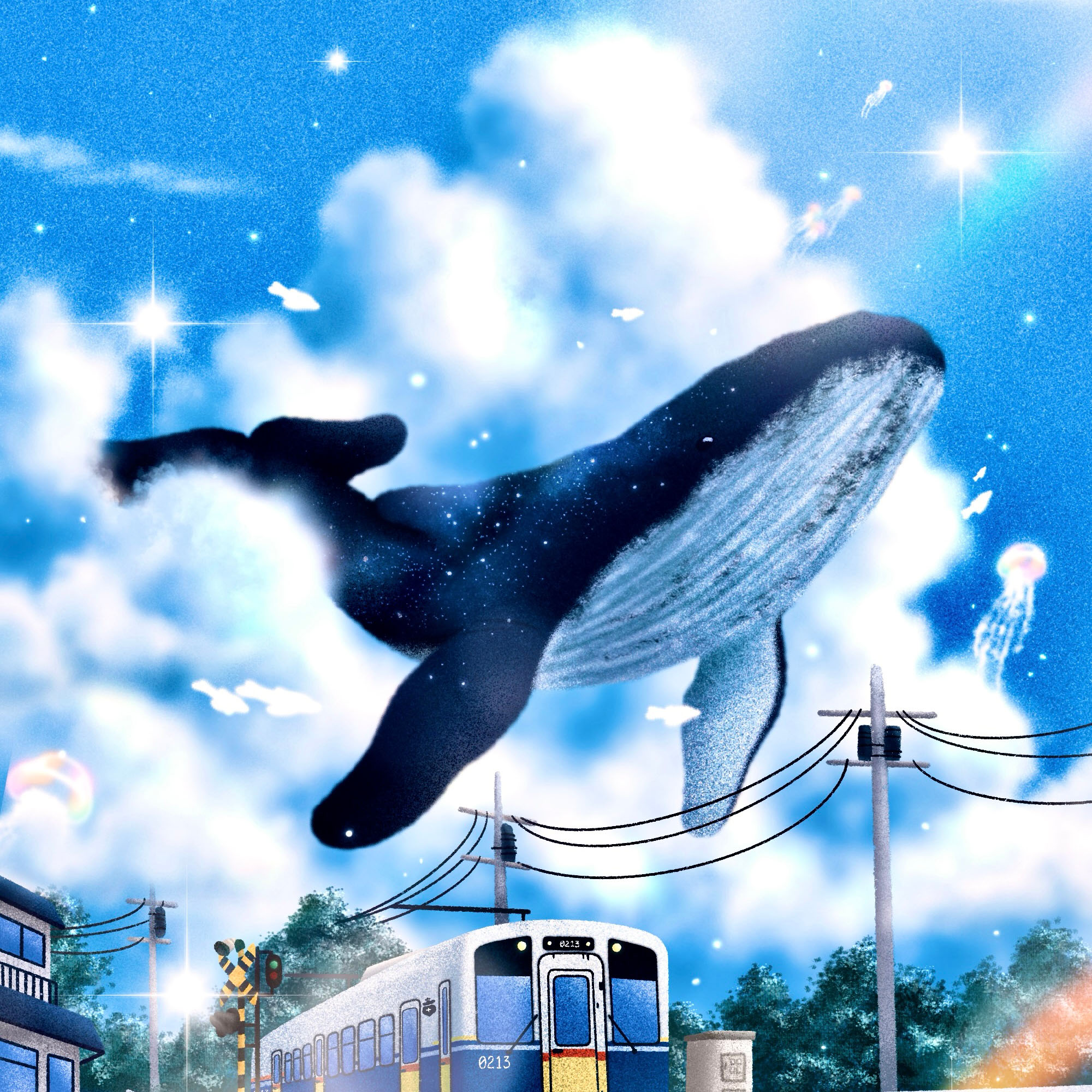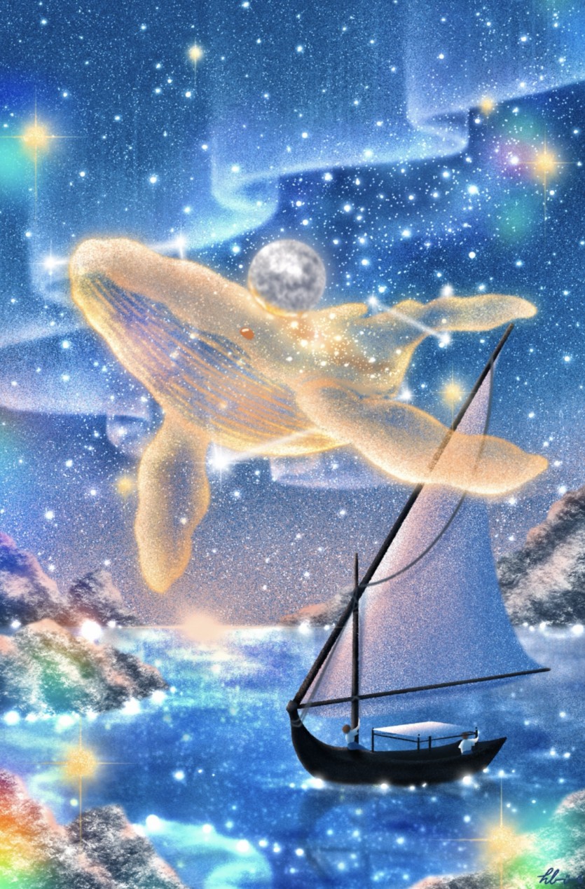 자연적 공간에 상상을 깃들인 풍경 그 속에 희망의 고래를 넣어 그립니다.