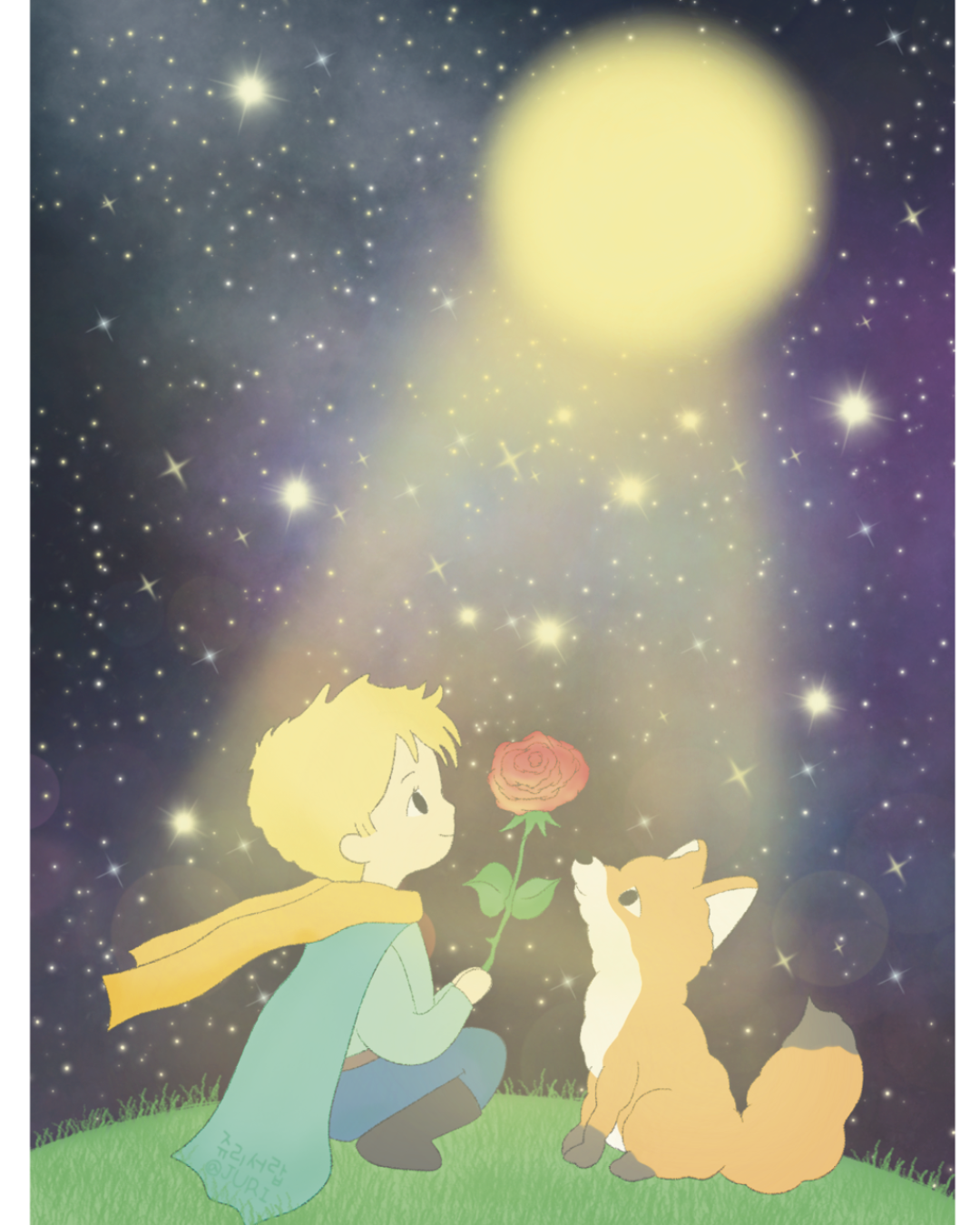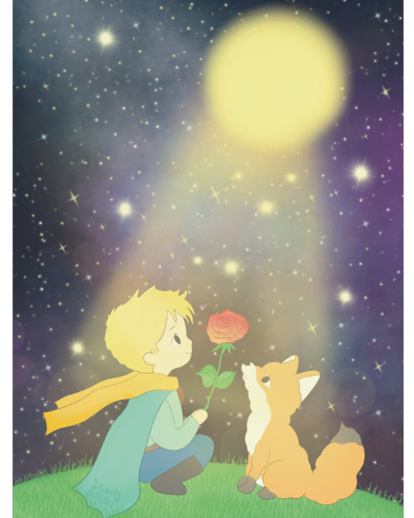장미와 함께 빛을 내리는 보름달을 보고 있는 ‘보름달이 참 밝네요’는 한 소설에서 사랑합니다를 “오늘 달이 참 밝네요”라고 표현했던 것을 보고 어린왕자가 장미에게 보름달 달빛을 보며 “오늘 달이 참 밝아”라고 수줍게 사랑을 전하는 작품입니다.