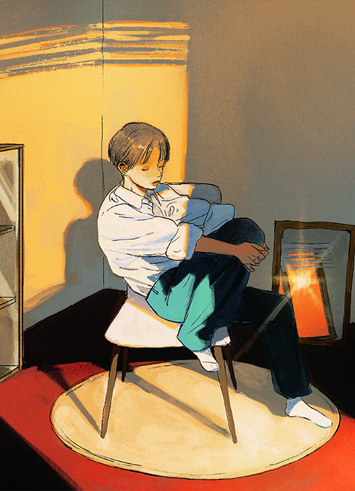 더 이상 바람을 피해 몸을 웅크리지 않아도 되는 날, 고개를 내밀어 바람에 실린 온기와 향기를 깊게 들이마시는 순간을 표현한 그림이다.