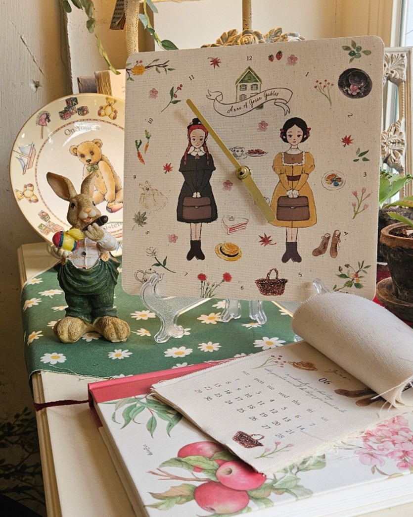 작가가 직접 수채화 스타일로 그린 빨간머리앤 일러스트를 기반으로, 달력, 손수건, 키링, 시계 등 다양한 굿즈로 재해석하였습니다. 부드러운 터치와 따뜻한 색감으로, 보는 사람에게 친근감과 감성적 위로를 전달합니다.