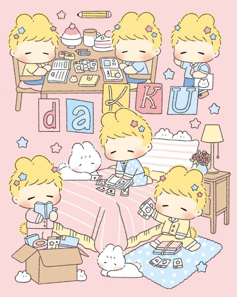 작은 별을 몰고 다니는 수호요정 리타와 러피를 그려요.