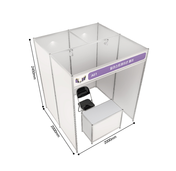 | Standard Booth | Standard A details | 2.0m X 2.0m X 2.5m | USD 540 | Nameplate, 2 lighting, 1 electrical outlet (1KW; 220V), 1 information desk & chair |