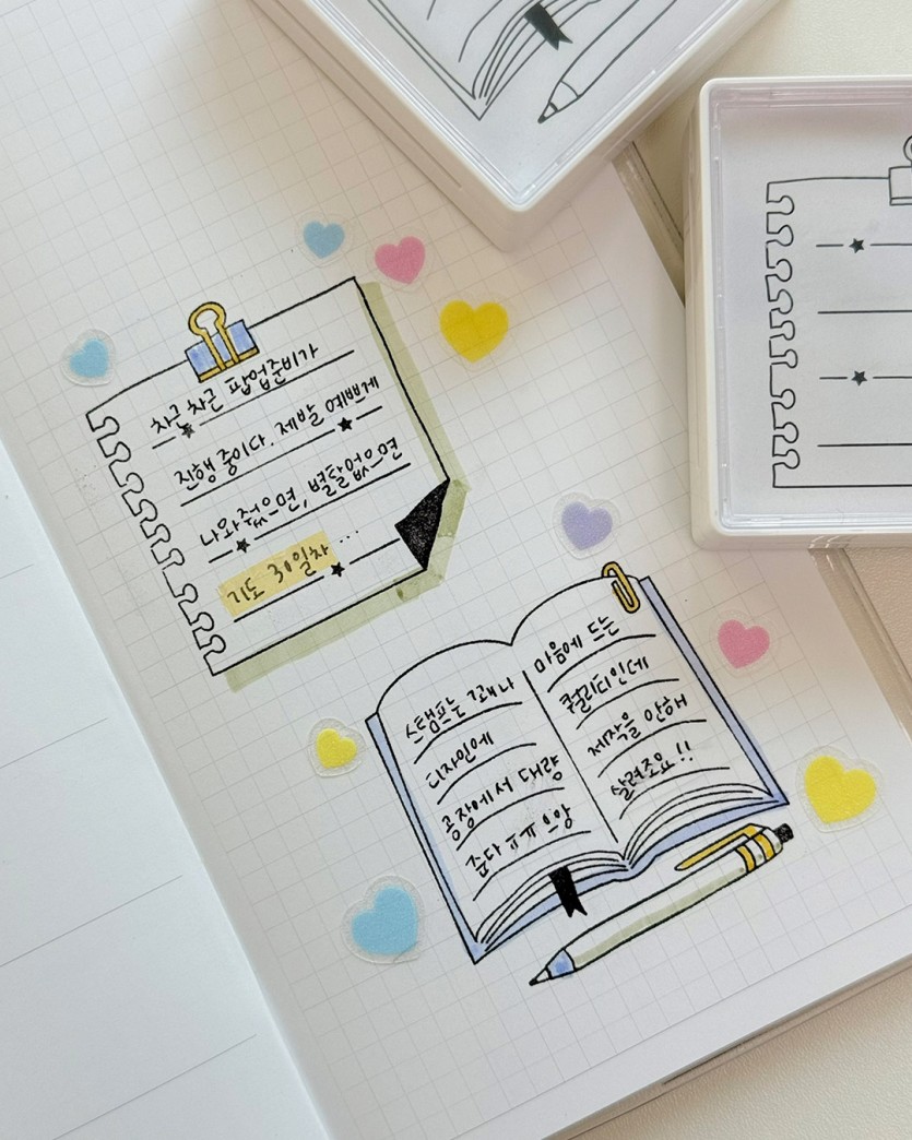 왕 스탬프, 포켓 이형지북 등 다양한 문구류를 제작합니다.