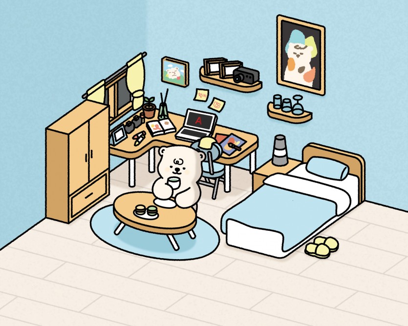 앵두앤유 캐릭터 쿠앙,크앙,삐미의 특징에 맞춰 각자의 방 컨셉으로 표현했습니다.