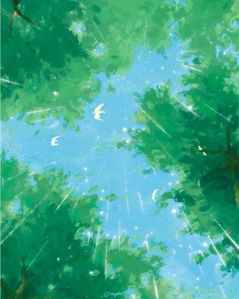 자연과 일상 속에서 발견한 작은 평온을 그림으로 담아내는 작가, 며리입니다. 숲과 호수, 새와 같은 자연의 장면들은 제 작업의 중요한 모티프로, 특히 새는 자유와 해방을 상징하며 일상 속 불안에서 벗어나고자 하는 마음들을 대변합니다. 제 그림을 보는 분들이 잠시나마 숨을 고르고, 마음의 쉼표를 얻기를 바라는 마음으로 작업을 이어가고 있습니다.