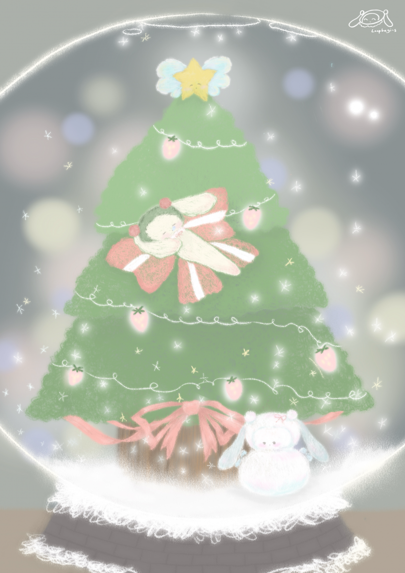 트리 아래에는 나비토끼 눈사람이 홀로 놀며
