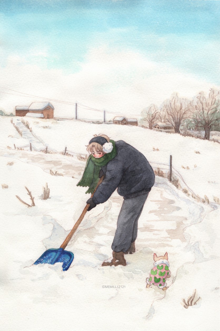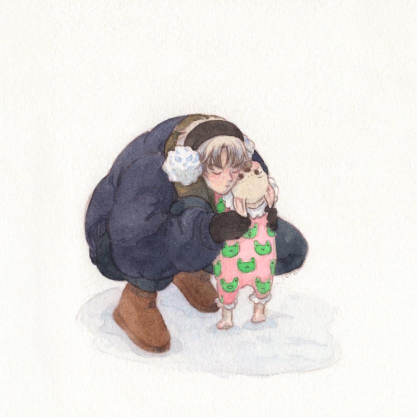 그리운 강아지와 닮은 강아지를 우연히 만나는 그림입니다.