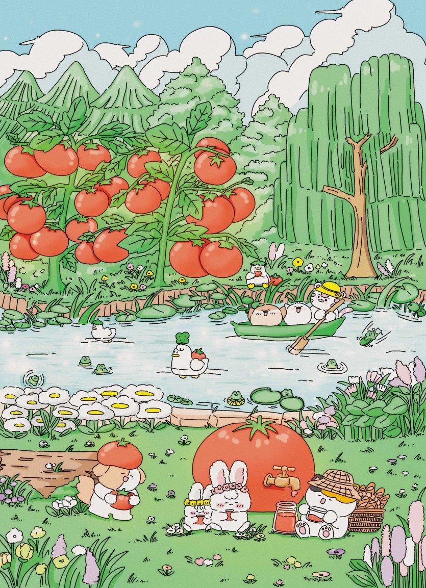 고양이가 가득한 세계관에서 여러 동물들이 어울리는 풍경을 주로 그리며