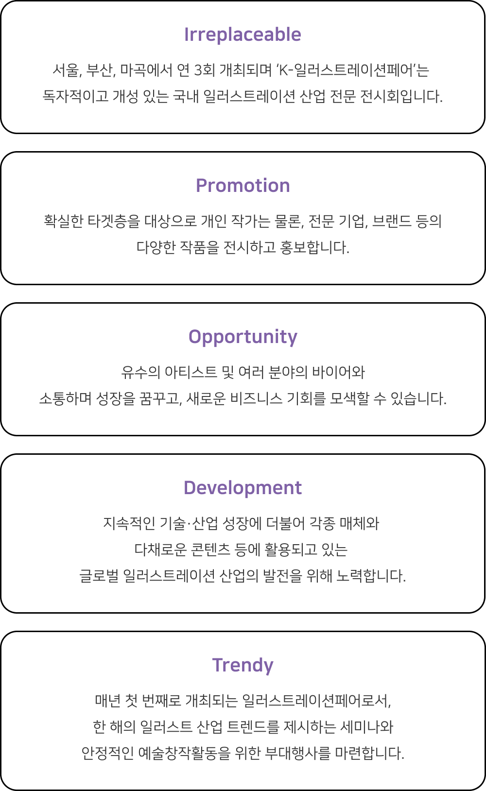 일러스트레이션의 모든 품목을 한 자리에서 만나볼 수 있으며,
